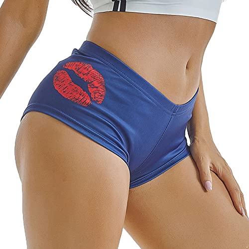 Damen Low Taillenumfang Elastischer Bund Rote Lippen Print Shorts Jogging Fitness Workout Shorts